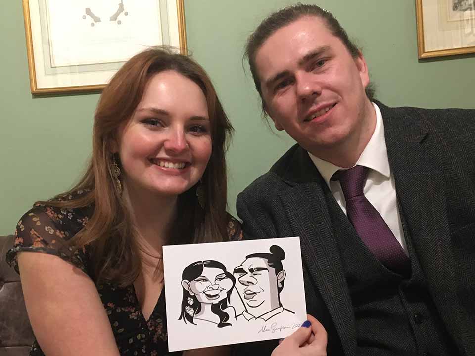 This was a bit different - digital caricatures at a wedding. Drawn at Merriscourt in Chipping Norton. 10 faces per hour, with A5 prints supplied in envelopes